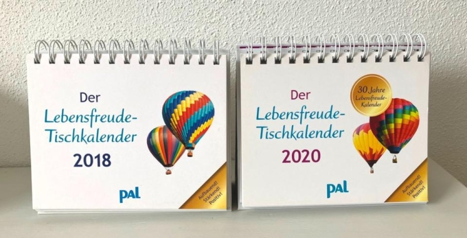 2 x PAL Lebensfreude Tisch Aufstellkalender von 2018 und 2020, neuwertig mit Spiralbindung und Umklappseiten für ein ganzes Jahr - aufbauend, motivierend, stärkend!