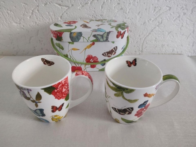 Neu 2 Porzellan Tassen in Box Victoian Garden Paula Scaletta