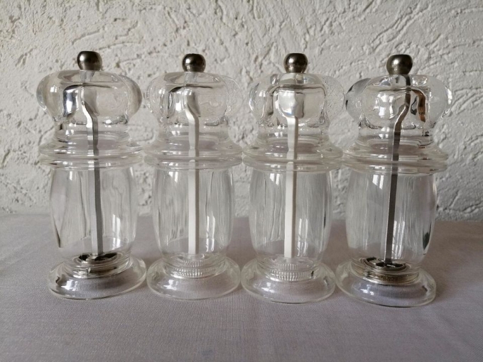 Ich biete unbenutzte und neue 2 Salzmühlen und 2 Pfeffernühlen im Set aus Plexiglas an.