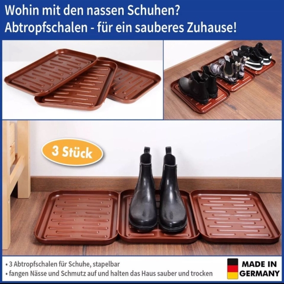 Nasses, schlammiges Schuhwerk braucht einen festen Platz zum Trocknen, sonst ist schnell die ganze Wohnung verschmutzt. Diese praktischen Abtropfschalen bieten die ideale, einfache Lösung!