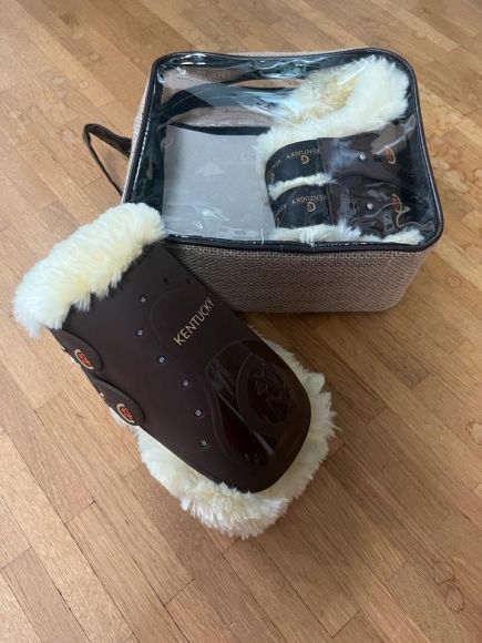 NEU Kentucky Streichkappen Elastic Lammfell WB braun Gamaschen