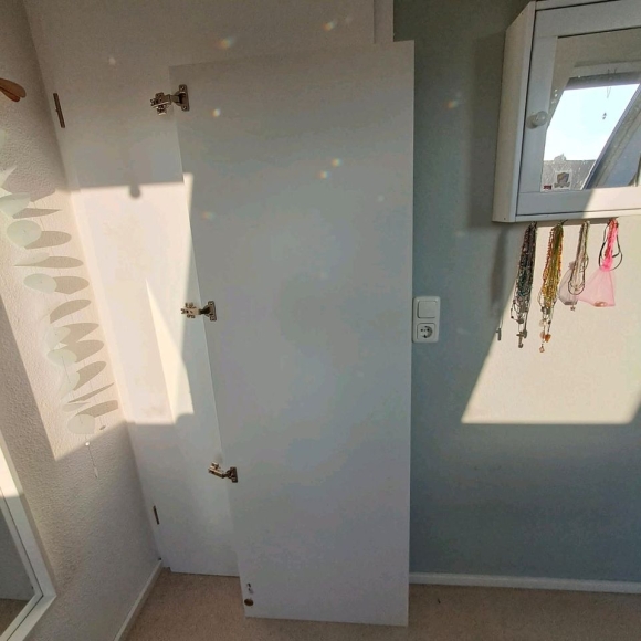 Wir haben eine neue Schranktür von Ikea zu verkaufen. Fonnes. Sie ist nicht benutzt, Pappe zum Transport noch vorhanden. Scharniere sind bereits installiert. Da wir zu Hause eine andere Lösung für unsere Regale gefunden haben, brauchen wir die Schranktür nun doch nicht. NP 30 Euro