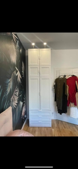 Ich verkaufe einen neuen Ikea pax Kleiderschrank, ideal für hohe Decken geeignet und kleine Räume. Der Schrank hat einen Neuwert von 1.140 Euro und wurde nur 6 Monate genutzt. Es gibt keinerlei Beschädigungen. Er ist in 3 Teilen umbaufähig und kann z.B. auch als Schuhschrank genutzt werden. Für weitere Informationen kontaktieren sie mich gerne per Nachricht.