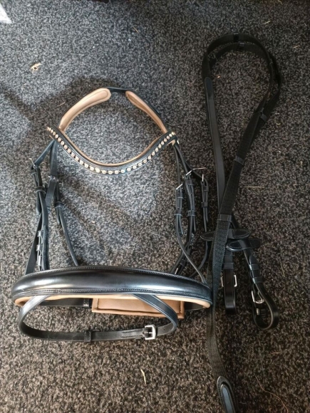 Verkaufe diese nur einmal benutzte Trense mit Genickstück, das den Halswirbel ausspart. Ich habe sie im Sale für 80€ erworben, vorher war sie noch teurer, finde das Modell aber leider nicht mehr.