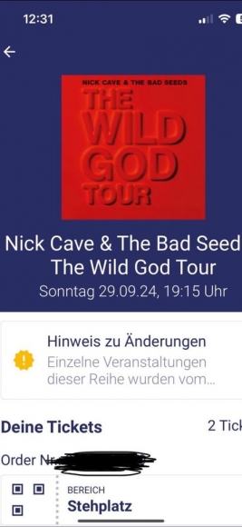 Nick Cave Tickets Concert Berlin 29.9.2024 - 2 Stehplätze