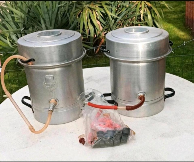 Aus Auflösung: 2x alter Entsafter aus DDR Zeit, um 1960/70. Beide Geräte komplett, aus Aluminium mit Zubehör. Nur Selbstabholung - Barzahlung. VB-Preis für beide 17 Euro. Tel. : 0177/2573970.