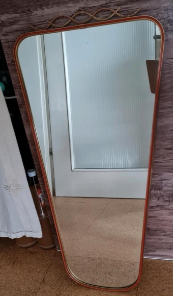 Verkaufe hier einen alten Retro Nierenspiegel mit rot goldenem Metallrand in einem sehr gutem altersentsprechendem Zustand .