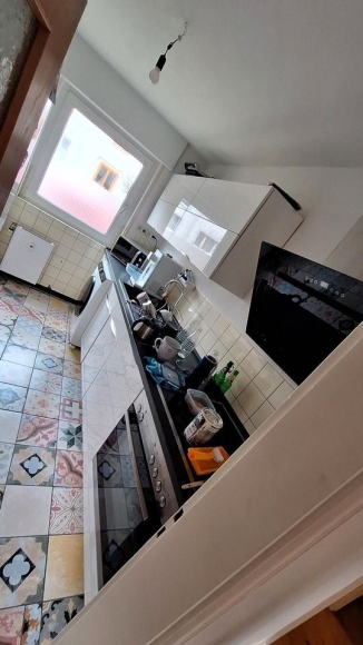 Die Küche passt in nahezu jede Wohnung (Elemente können individuell angeordnet werden). Neue Arbeitsplatte (aktuell= neuwertig von Juni 2023).