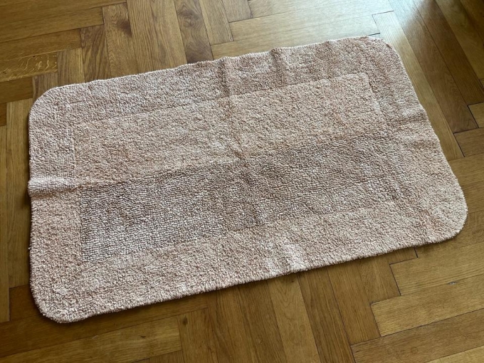 Wunderschöne, hochwertige und außergewöhnlich große Badematte (75 x 125 cm) aus 100% Baumwolle in einem hellen braun. Vorder- und Rückseite identisch. Wird im Trockner flauschig weich. Waschbar bis 95 Grad.