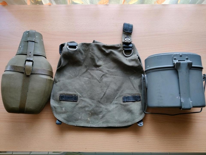 Ich biete hier ein Set aus einem NVA Essgeschirr was und unbenutzt ist (aus Lagerbestand des THW'S) einer gebrauchten NVA Feldflasche und einem Brotbeutel. Nur Versand