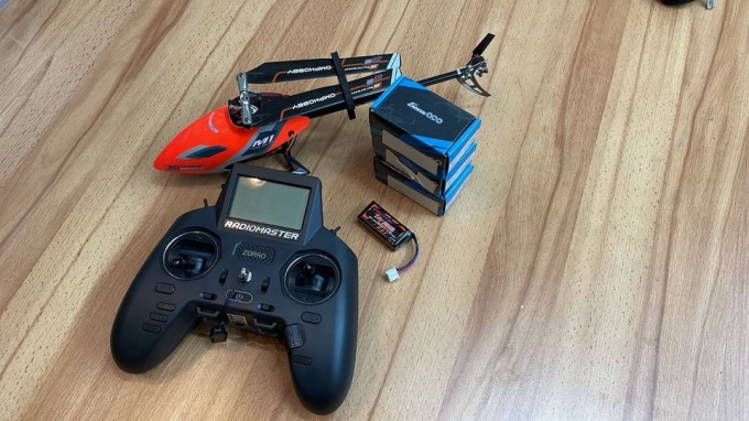 Ich verkaufe einen M1 evo mit einer Radiomaster Funke. Das Modell ist ohne Kratzer, Beschädigungen, oder sonstiges. Er wurde nur programmiert und einmal geflogen. Die 4 Lipos sind im Lieferumfang dabei und sind im perfekten Zustand. Das Modell kann sofort genutzt werden. Es handelt sich um einen 3d Heli, der alle Ansprüche erfüllt, an einen geübten Piloten. Die Box von OMP ist auch dabei, hab diese vergessen zu fotografieren.