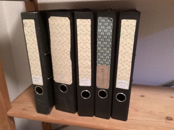 Verschenkt werden Ordner funktionstüchtig mit Gebrauchtspuren, überwiegend schwarz/ anthrazi