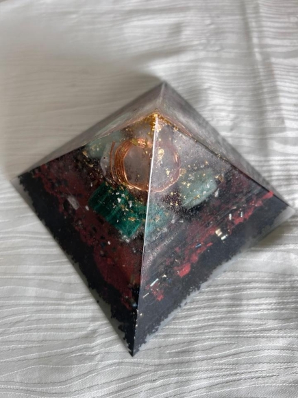 Bestandteile: Bergkristall, Aventurin, Malachit,Rosenquarz, echtes Blattgold, Schungit, roter Jaspis, Kupfer, Eisen…