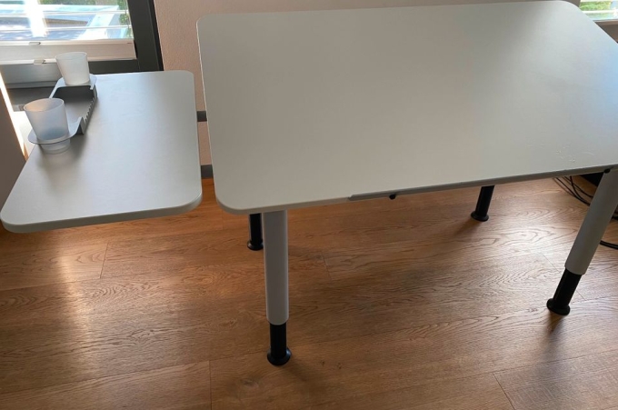 Tischverlängerung als zusätzliche Ablage oder PC-Standplatz (Breite 35 cm und Tiefe 70 cm), so dass eine gesamte Tischbreite von 160 cm erreicht wird (bei Montage wie auf Foto).