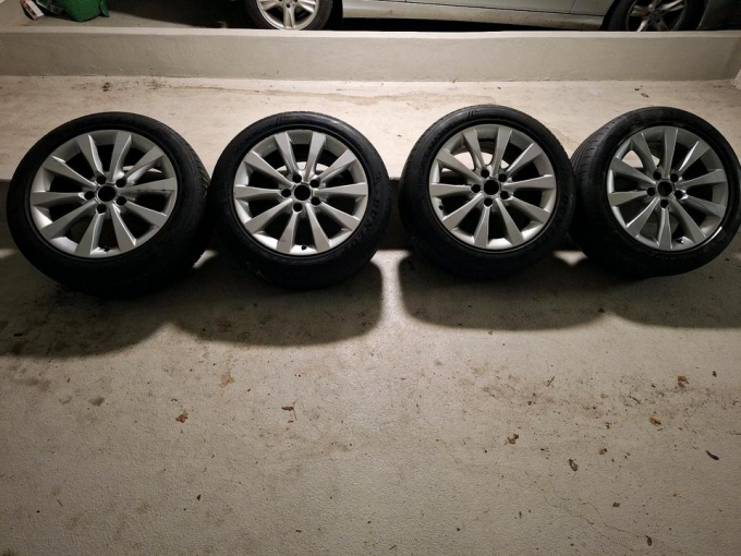 Die Felgen sind original von Audi und passen auf verschiedene Modelle. Die Reifen bieten eine gute Straßenlage und sind ideal für den Sommer.