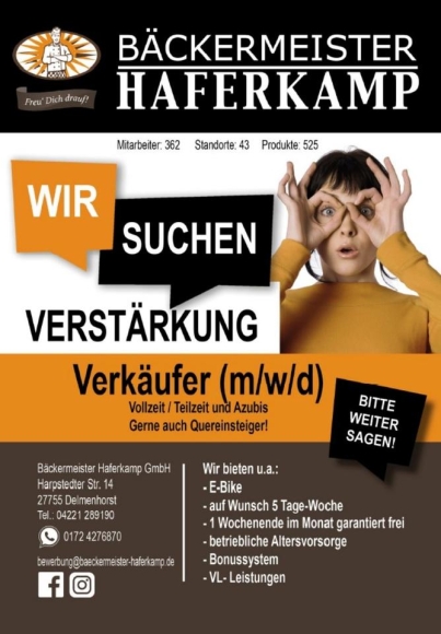 Verkäufer /-in (m/w/d) Vollzeit / Teilzeit Bäckerei OHZ Scharmbeck