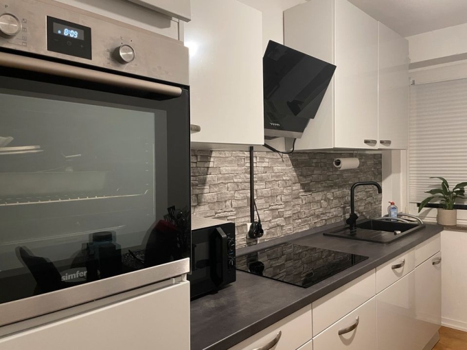 Die Küche ist ca. 1,5 Jahre alt, jedoch wie neu, da ich beruflich kaum zuhause bin. Es sind an allen Möbelschränken noch die Orginalfolien dran (siehe Bild)