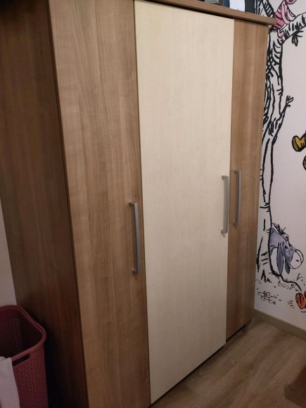 Schrank ca.130*75*200cm mit zwei Kleiderstangen übereinander und links und rechts Fächer.