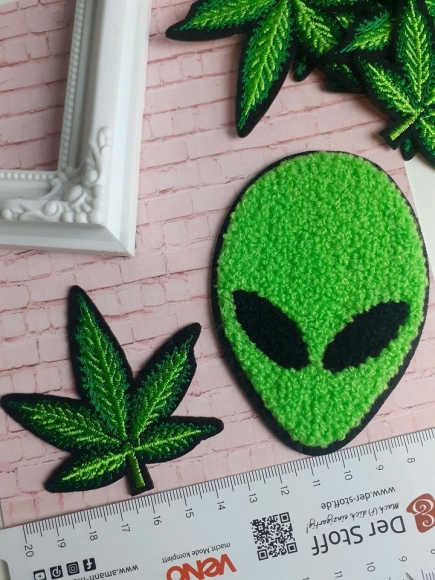 Patches Aufnäher Bügelbild Alien Gras Hanfblatt Cannabis