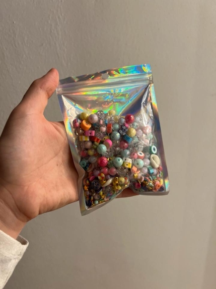 Bunte Perlen Tüte mit Band drinnen für Armbänder machen