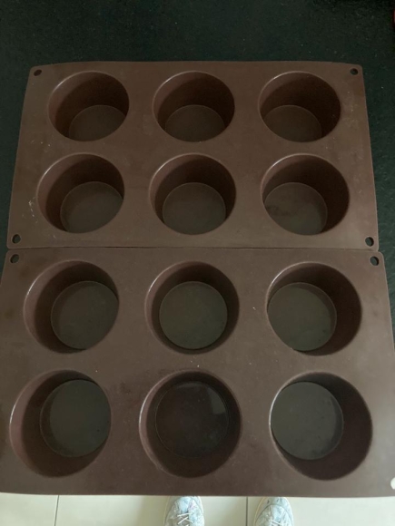 Biete 12 kaum benutzte Muffin Backformen aus Silikon, von -40 bis +250 Grad C, Größe: 30x17,5x4,5 cm zum Preis von 6 € an.