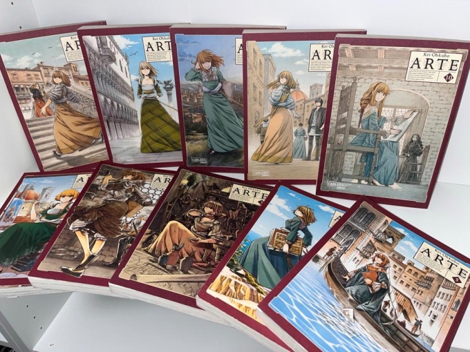 Ich verkaufe die Bänder 1-10 vom Manga Arte. Die mangas sind sehr gut erhalten und haben keine Knicke oder Falten, nur leichte Abnutzungsspuren, die in den Bildern zu sehen sind. Die meisten sind praktisch wie neu.