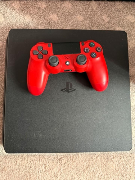 Ich verkaufe meine PlayStation 4 Slim mit 500GB Speicher inklusive einem originalen DualShock 4 Controller in Rot. Die Konsole funktioniert einwandfrei und ist in einem sehr guten Zustand – nur leichte Gebrauchsspuren, wie auf den Bildern zu sehen.