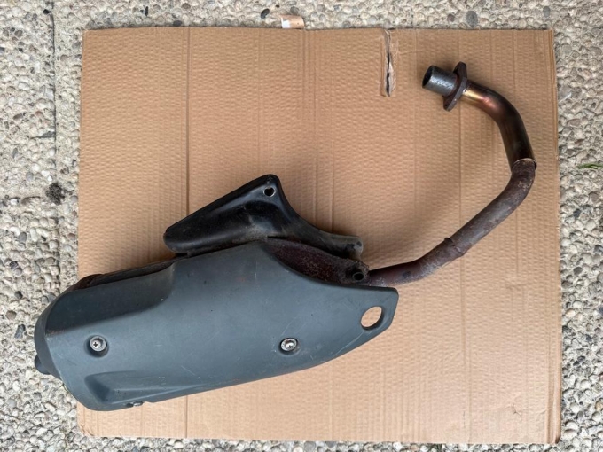 Piaggio Skipper 125 4T Auspuff an Bastler. Krümmerrohr wurde schon ersetzt und ist derzeit nur lose draufgesteckt. Rostig, aber nicht durchgerostet. Zustand siehe Fotos.