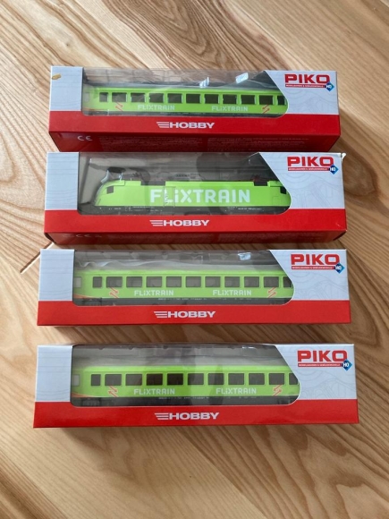 Biete hier aus Sammlungsauflösung diese Piko-Kombination an. Sie wurde von New Lok Design digitalisiert und farblich an Flixtrain angepasst. Festpreis!!