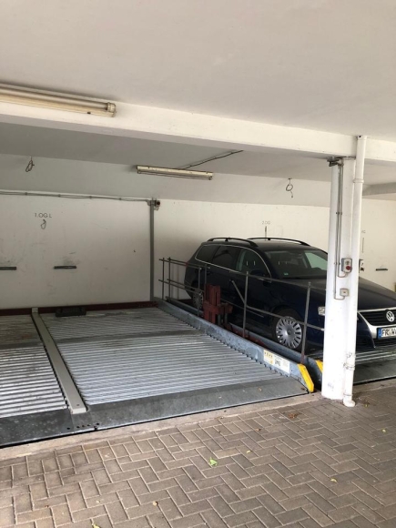 Der Stellplatz ist überdacht, liegt sichtgeschützt hinter dem Wohngebäude und ist 24/7 zugänglich. Es handelt sich um den oberen Platzt einer Doppelparkerplattform, deren Maximalmaße es zu berücksichtiges gilt: Höhe 1,5m, breite 2m Länge 5m, Gewicht 2t