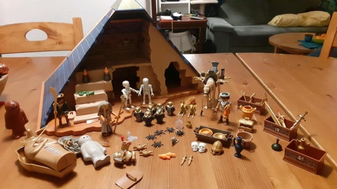 Playmobil Pyramide des Pharao und Transportkamel mit sehr viel Zubehör (wie abgebildet - müsste komplett sein). Mit Geheim- und Falltür, Sarkophag mit Mumie und Skelett,...)