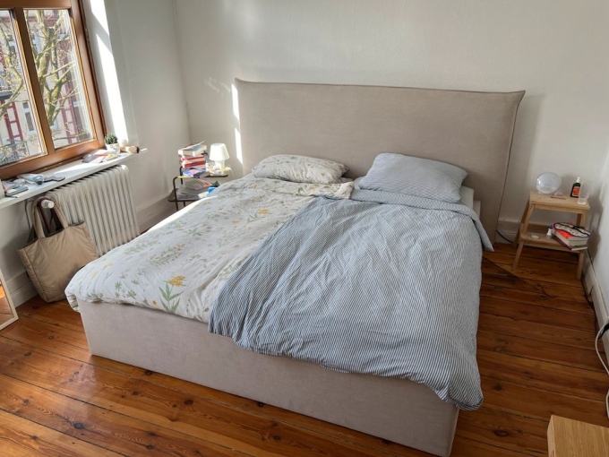 Das Bett kann in Hamburg Uhlenhorst besichtigt und abgeholt werden. Ich helfe gerne mit beim Abbau und Tragen.