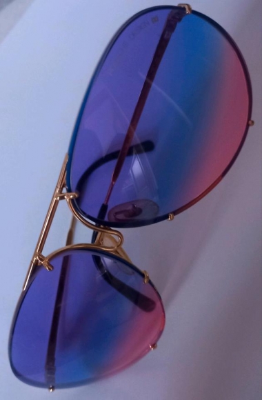 gut erhaltene Porsche Design Sonnenbrille mit Wechselgläsern / Regenbogenfarben und Etui.