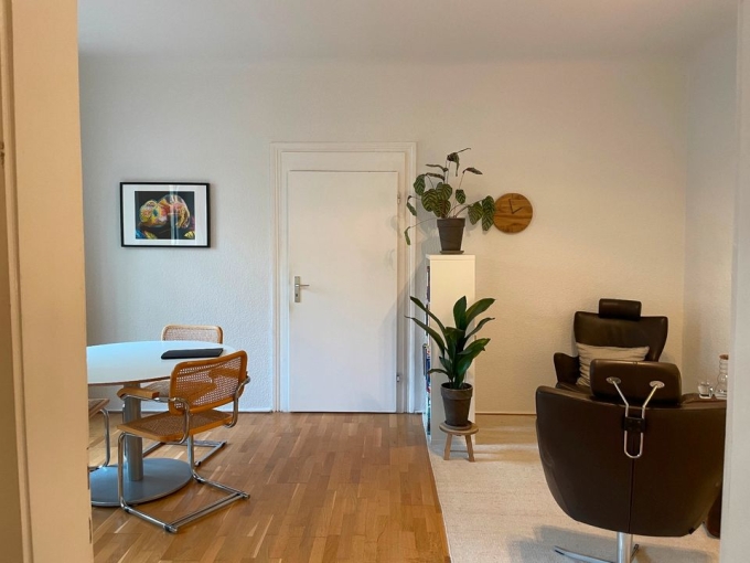 Ich vermiete ab Mai 2024 meinen Behandlungsraum und ein kleines Büro unter. Der Behandlungsraum ist ausgestattet mit einer Sitzecke mit zwei Sesseln und einem großen runden Tisch mit drei Stühlen. Der Raum ist geeignet für ein Gesprächs-/Therapiesetting zu zweit (Paartherapie/Gruppen sind nicht möglich). Das kleine Büro steht dir zur alleinigen Nutzung zur Verfügung. Es kann nach eigenen Wünschen eingerichtet werden und bietet genug Platz für einen Schreibtisch und Aktenschrank. Des Weiteren gehören ein kleiner Eingangsbereich mit Küchenzeile, ein WC und mein Büro zur Praxis.