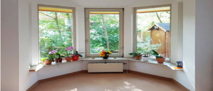- kleiner Raum (9 m²): perfekt als Büro oder 1:1 Praxis