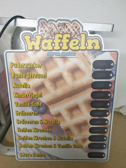 Preistafel Schausteller Werbung Waffeln