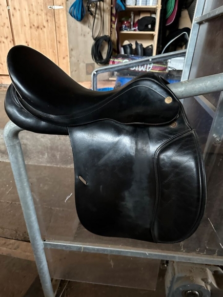 Ortsweite 34, gem. Druck, wurde jedoch schon 1,5 cm breiter gemacht. Da Prestige immer kleiner ausfällt, ist die Ortsweite nun 28 cm (siehe Bild). Kammer 14 cm. Sattel top in Schuss, bis auf leichte Gebrauchsspuren.