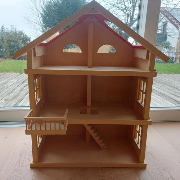 Wir verkaufen ein Puppenhaus von Goki mit Badezimmer, Küche, Wohnzimmer, Esszimmer und Zubehör ( siehe Foto)