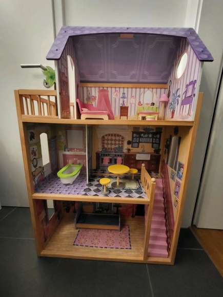 Ich biete das Puppenhaus Kayla von KidKraft an. Die Größe des Hauses und der Möbel sind für Barbiepuppen ausgelegt.