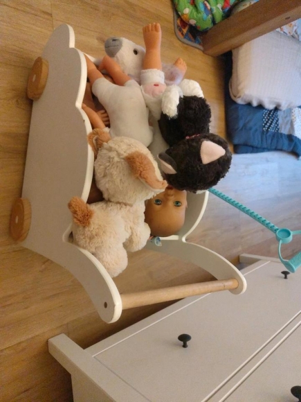 Die Holzräder sind ideal geeignet für Teppichböden.