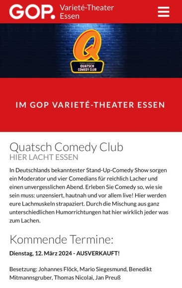 Quatsch Comedy Club, GOP Essen, Di, 12. März 2024