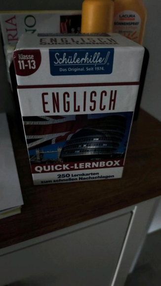 kaum benutzte Lernbox mit lernkarten zum Englisch verbessern.
