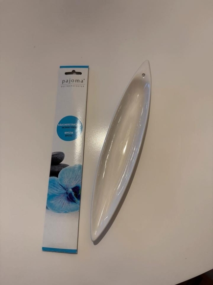 ich verschenke hier einen einmal genutzten Räucherstäbchenhalter (NP 3€) sowie eine Packung Räucherstäbchen (NP 1,30€ - ein Stäbchen fehlt).