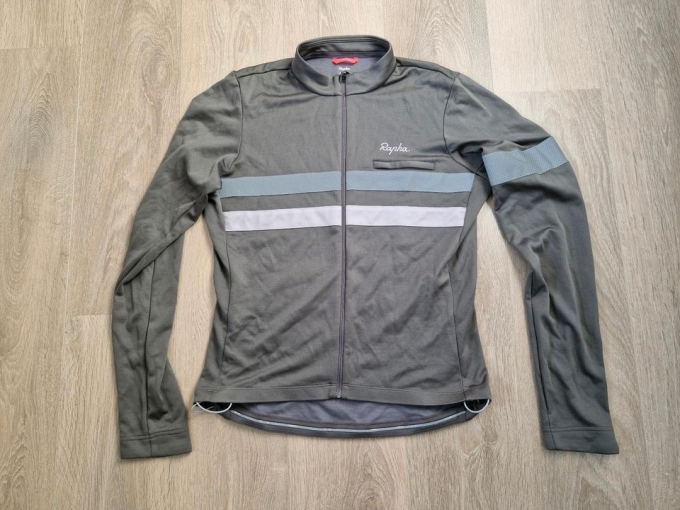 Rapha Mens Brevet Longsleeve Jersey in XL, Trikot aus Merino-Polyester-Mischgewebe. 1x gewaschen, nie getragen. Farbe grau mit leichtem grün-braun-Touch. An der Seite ist ein kleiner Faden gezogen (s. Foto), fällt aber nur bei sehr genauem Hinsehen auf. Versand zzgl. 4€.