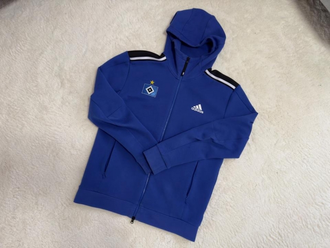Die Jacke wurde von den Spielern und auf Reisen getragen. Die Jacke befindet sich in einem sehr guten Zustand und weist keinerlei Löcher oder ähnliches auf. Lediglich an der Kapuze und Kragen erkennt kleine Verwaschungenwelche beim Tragen jedcoh nicht stören. Ideal für kalte Tage und wenn der HSV auf Auswärts auf Reisen geht.
