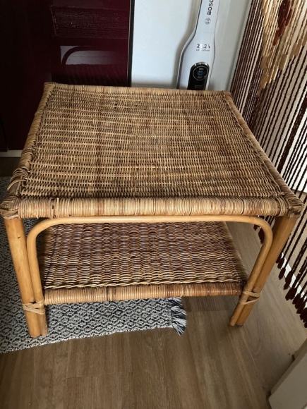 Hübscher, tiefer Rattan Tisch mit unterer Ablage, leichte Gebrauchsspuren