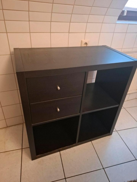 Verkaufe schwarzbraunes Regsl von Ikea. Es ist ein Einsatz mit zwei Schubladen drin.