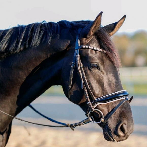 Ansonsten ist er sehr vielseitig. Hauptsächlich sind wir in der Dressur unterwegs. Springen und Ausreiten bereiten ihm aber auch unheimlich viel Spaß.