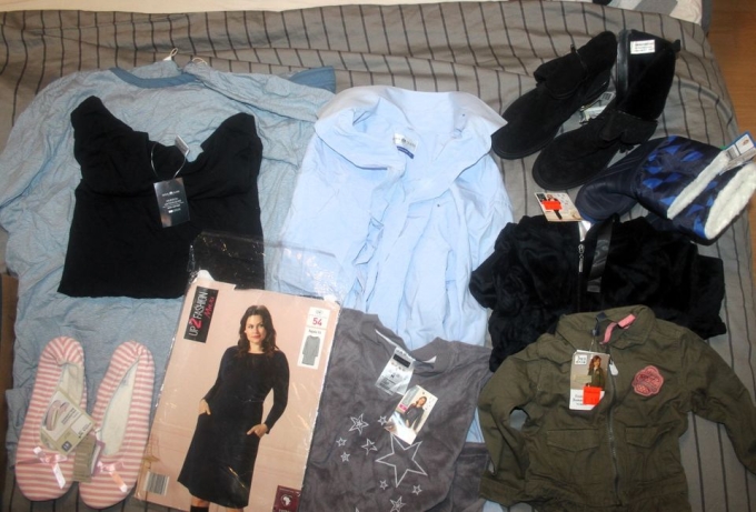 Biete hier einen Restposten Karton mit nagelneuer Bekleidung für Mann, Frau und Kind an.