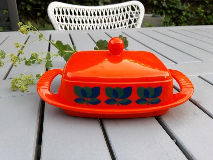 Retro Vintage 70er Emsa Butterdose Design Bologna Flower Power